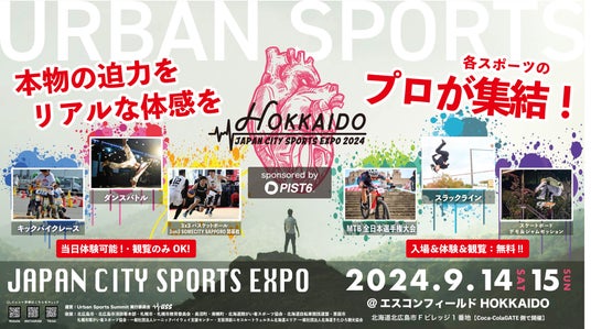 Urban Sports Summit 実行委員会は、9月14日(土)・15日(日)の2日間、エスコンフィールド HOKKAIDOにて【PIST6 Presents「JAPAN CITY SPORTS EXPO 2024 HOKKAIDO」】を開催いたします。