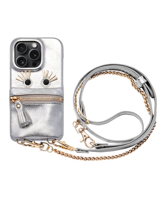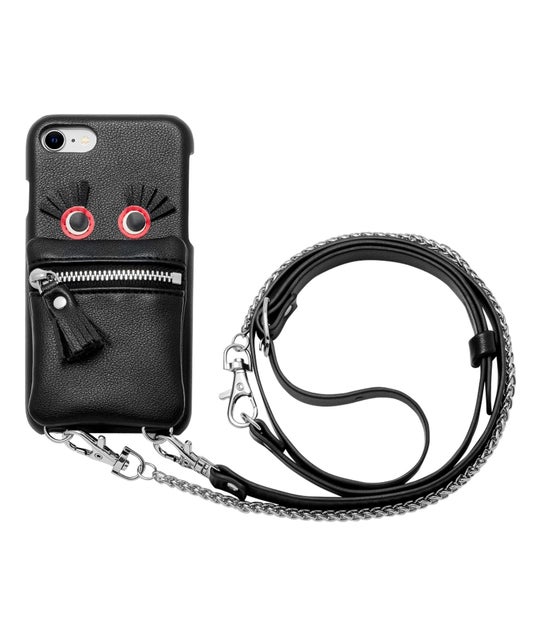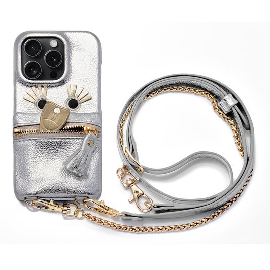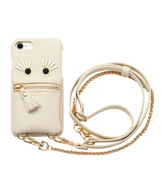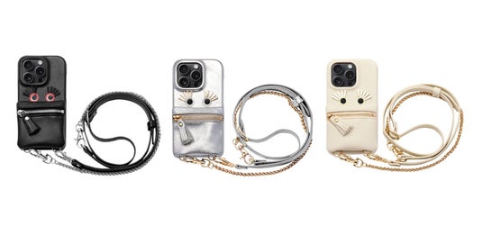 口に見立てたポーチ付きのIROMEKIの背面型ケースに、スマホショルダーとしても使えるチェーンストラップ付きで、より遊び心が溢れるiPhoneケース“follow me”