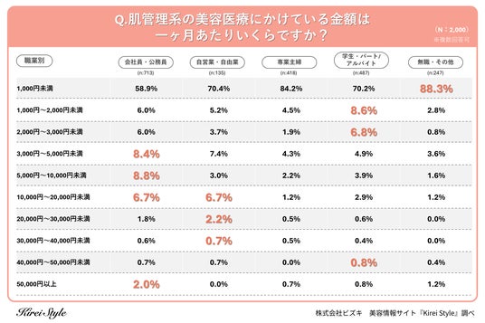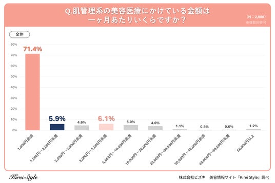 【質問:肌管理系の美容医療(フォトフェイシャルやケミカルピーリング等)にかけている金額は一ヶ月あたりいくらですか?】