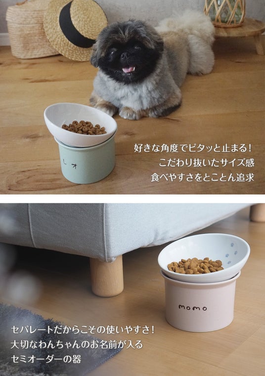 わんちゃんと飼い主さんどちらにもうれしい「使いやすさ」と「機能性」を追求!食べやすい角度に調整可能な小型犬に特化した小型犬のためのセパレートタイプの器