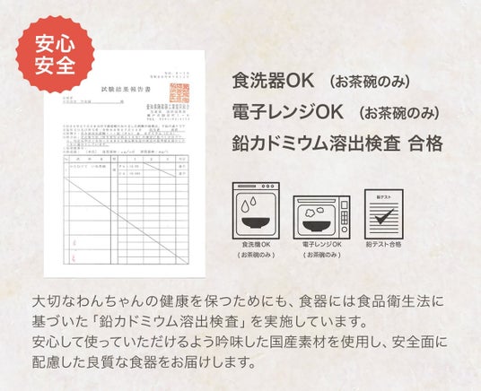 鉄分が少なくキメが細かい土は食器の製造に適しているため、わんちゃんねこちゃんにも安心して使っていただけます。