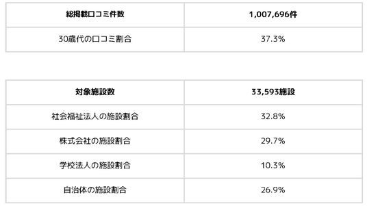 口コミ総掲載件数100万件の保育士職場口コミサイト『保育士のミカタ』は、30代の保育士が投稿した口コミ内容を分析し、保育園・幼稚園の職場にどんな点を評価をしていて、どんな点を評価していないのか30代保育士の実態調査を行いましたので、調査結果を公開いたします。