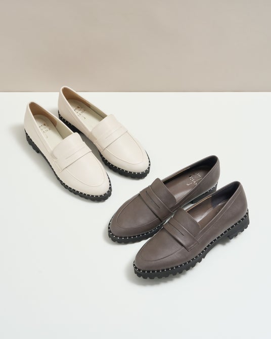 ソールのまわりにキラリと輝くスタッズがポイントのローファー。コーディネートのアクセントに。