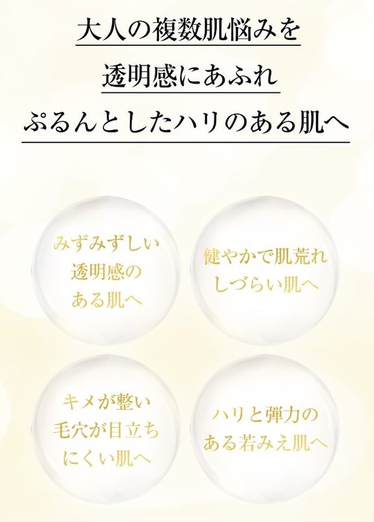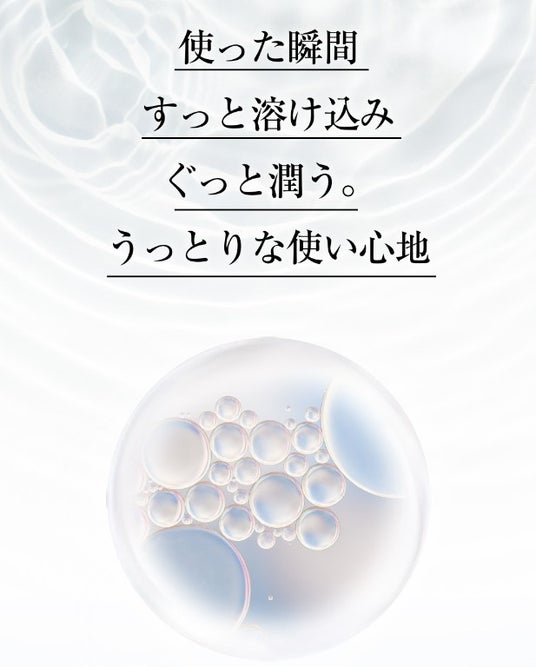 つける瞬間も心地よく、つけた後はしっとりみずみずしい感触。使ったその日から、うるおいに満ちる肌を感じていただけます。