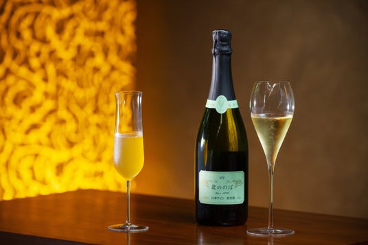 ワインは、日本ワイン「MV 北ののぼ」を合わせました。葡萄の凝縮感や深みのあるスパークリングワインで、しっかりとした味わいがあります。モクテルは、炭酸に煮詰めたリンゴとノンカフェイン紅茶、モルト(麦)シロップを合わせたものです。リンゴは煮詰めると熟成したシャンパンを思わす風味が感じられます。そこにモルトシロップで黒ビールのような風味も加え、モクテルならではの熟成感を創りあげました。