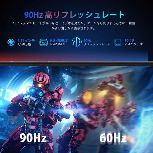 MAX 1TBのストレ-ジ&最大9GB メモリ90Hzディスプレイは、一般的な60Hzディスプレイと比べ、滑らかで応答性の高い表示を提供します。画面のリフレッシュレートが高いため、スクロール時や動画視聴、ゲームプレイなどでの体験がより快適になります。特に、アニメーションの動きが自然に感じられ、視覚的なストレスが軽減されることから、ユーザーの満足度が向上するポイントとして評価されています。