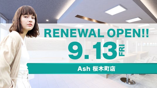 美容室チェーンを約350店舗展開する株式会社アルテ ジェネシス(横浜市中区/代表取締役社長 吉村 栄義)のグループ会社である株式会社アッシュ(横浜市中区/代表取締役社長 柴崎 興司)は、Ash 桜木町店を2024年9月13日(金)にリニューアルオープンいたします。