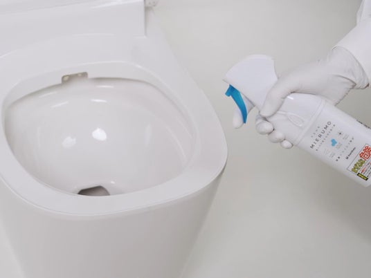 漂白可視化法と2液式スプレー機構の組み合わせにより1プッシュで尿ハネ汚れ部のみに色を付けることが可能になりました。