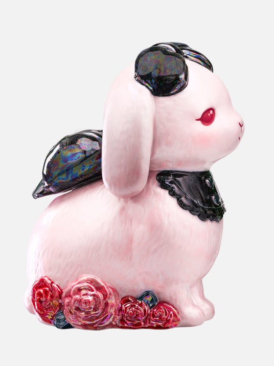 うさぎのかわいさを存分に引き出すデザインとして、大きなリボンを頭と背中に着けた『Ribbon(リボン)』(写真左)、大切な想いを伝えるように大きなお花を手にした『Pierce(ピアス)』(写真右)とそれぞれに個性あるデザインとなりました。