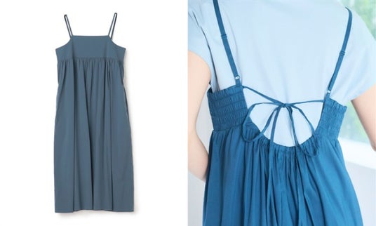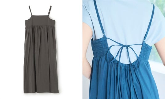 着用のキャミワンピースはコレ!ギャザーの切り替えがスタイル良く見せるくれるキャミワンピ。バックリボンとシャーリングで、ジャケットを脱いだときのシルエットの良さもお約束。洗濯機で洗えるので汗をかいても安心。ポケットがあるのも嬉しいところ。ストラップで長さを調整できるだけでなく、丈が2種類あるので、自分にぴったりの1枚が見つかるはず!