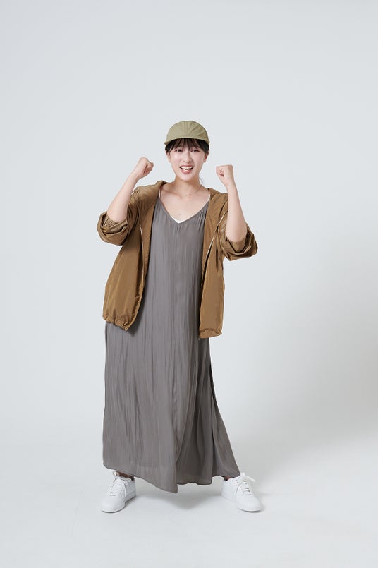 スポーツの秋がきた!大人スポーティーなルックでアクティブに観戦「全力で応援するぞ!」と、つい応援にも熱が入るサッカー観戦。猛暑で外遊びを控えていた分、9月は思いっきり楽しみたい。足さばきの良いキャミワンピに、ツヤ感のあるブルゾンをあわせてきれいめカジュアルに。キャミワンピはあえて柔らかなフレアシルエットを選んでこなれ感もアップ。