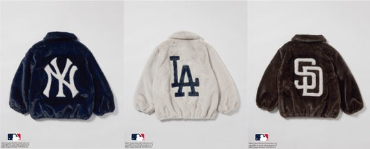 「JUNRED(ジュンレッド)」では、ロサンゼルス・ドジャース、ニューヨーク・ヤンキース、オークランド・アスレチックスの3 チームをイメージしたラインアップ。ユーズド感を演出したデザインに「JUNRED」らしいトレンドをプラスしたスウェットや、スタジアムジャンパーをベースにしたヴィンテージ感のあるルーズなレザーブルゾンを展開します。