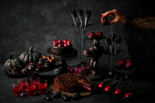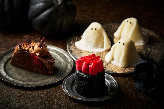 白いお化けのムース、真紅のクリームが映えるガトーショコラ、お墓から手が伸びるチョコレートケーキは、まさにホラー映画さながら。さらに、ジャック・オー・ランタンや黒猫をモチーフにしたパンも登場します。見た目も味も楽しめる特別な時間をお過ごしください。