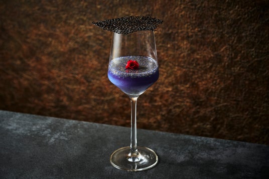 妖艶な見た目のカクテルは、ギリシャ神話の女神の名を持つリキュールを使用。深い藍色のカクテルに飾られたチアシードはまるで星屑のよう。1輪の薔薇とグラスの上に置かれた黒のチュイルが、夜の美しさを演出しています。夜の女神に導かれてハロウィンナイトを楽しみましょう。