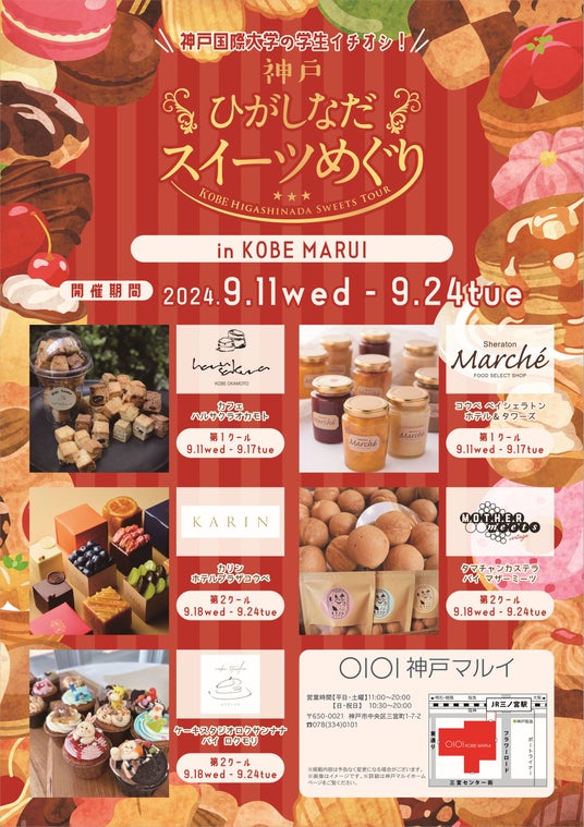 神戸マルイ(本社:東京都中野区、取締役社長:青野 真博)1Fにて『神戸ひがしなだスイーツめぐり in 神戸マルイ』を開催します。神戸市東灘区内地域イベント「神戸ひがしなだスイーツめぐり」に先駆けて、参加ショップから神戸国際大学の有志メンバーが厳選した5ショップが出店するイベントになります。丸井グループは、今回の取り組みをはじめ、「一人ひとりの『好き』を応援」する取り組みを拡大しています。