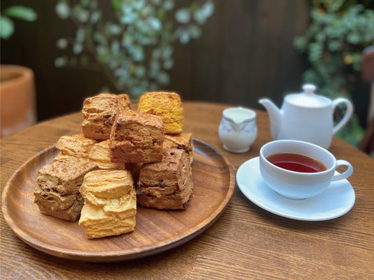 cafe haru_sakura okamoto神戸・岡本バラ園前のカフェがつくる自家製ケーキ・スコーンなど紅茶に合うスイーツを多数取りそろえています。人気のスコーンは増田製粉所から仕入れた上質な小麦粉と純正48%のバターをたっぷり使用し焼き上げています。