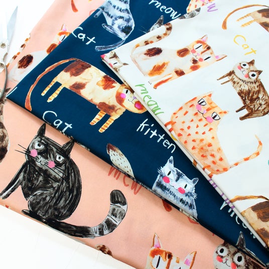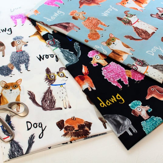 ラフなタッチのかわいい犬や猫がデザインされた生地です。