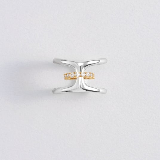 アームの側面と内側にだけイエローゴールドコーティングを施し、片側にだけあしらわれたダイヤモンドがさりげなく輝きます。