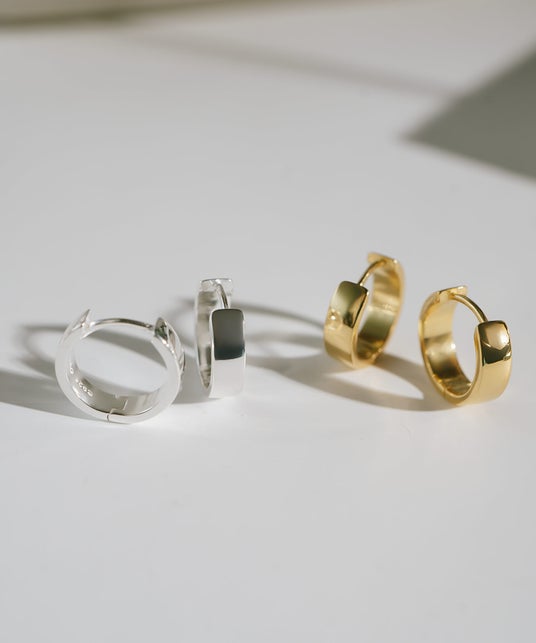 毎日つけたくなる小ぶりでシンプルなデザインが魅力の、クラシックなフープピアスが新登場。4mmの幅広ラインがさりげない存在感を放ち、耳元にスタイリッシュな輝きを添えます。