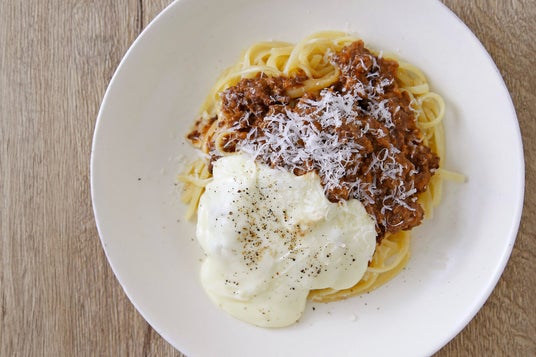■淡路島産牛肉のスパイシーミートソース 北坂卵黄のせ 島ハーブの香り