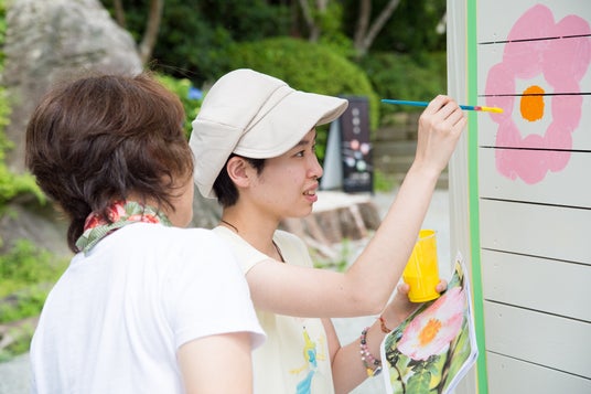6年ぶりに小田原の福祉事業所「アール・ド・ヴィーヴル」のアーティスト6名を招き「箱根の自然と楽しい仲間たち」をテーマに、園内にある東屋でライブペインティングを行います。
