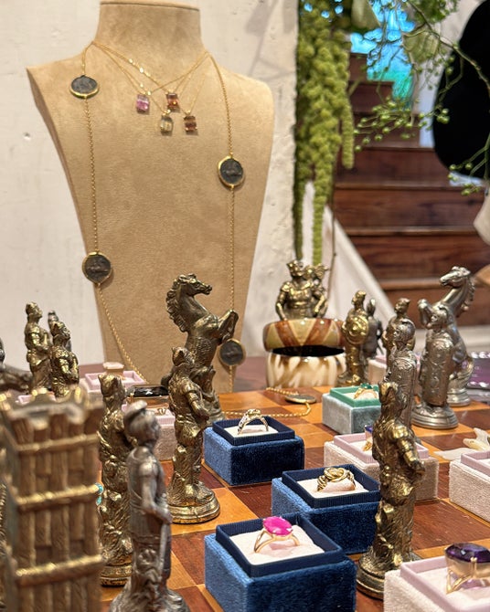 ビンテージや蚤の市のパーツを活用しながら作り上げる“Junco Paris(ジュンコパリ)”のコレクション。今回スペシャルオーダーしたのは、様々なパーツをつなぎ合わせたロングネックレスに、自由に組み合わせられるチャーム5つを揃えていただきました。ネックレス1型、チャーム5型の全6型での展開です。