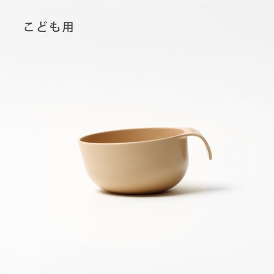 小さなこどもでも左右方向がわかりやすく、持ち手がある方に手を添えて使っていただくことで、ひとりで最後まで食べられるようにサポートします。