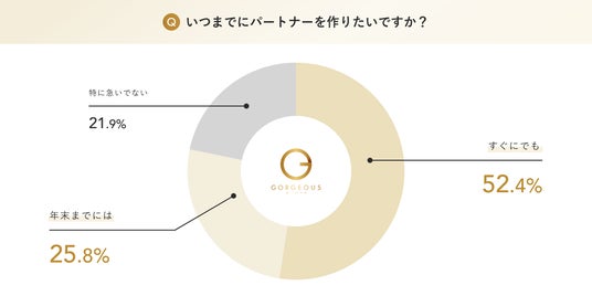 ◼️すぐにでもパートナーを見つけたい(52.4%)、年末までには(25.8%)と、年内までにパートナーを作りたいと78.2%が回答