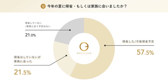 ・この夏に「帰省した/今後帰省予定」と回答した人は57.5%と半数以上が帰省