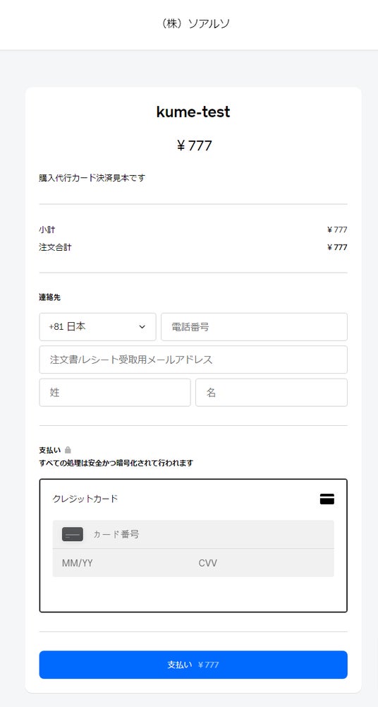カード決済画面の見本
