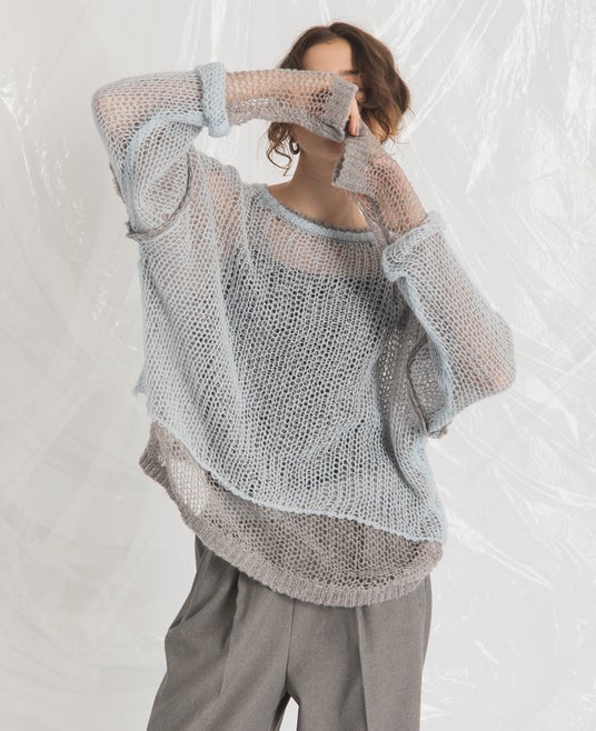 【ENTO】2024AWコレクションより、リバーシブルで使えるモヘヤ混メッシュレイヤードニット