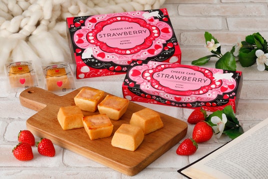 福岡県産あまおういちごのドライストロベリーやピューレ、ペーストをデンマーク産の濃厚なクリームチーズに加え1本1本丁寧に焼き上げました。あまおういちごの甘酸っぱい美味しさがぎゅっと詰まった、冬のティータイムを彩る贅沢な味わいのチーズケーキです。
