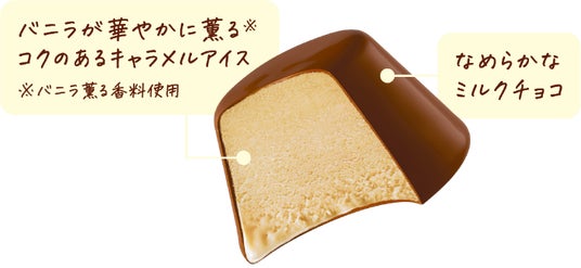 2.バニラ薫るキャラメルアイスを、なめらかでコクのあるミルクチョコでコーティングした、ひとくちアイスです。