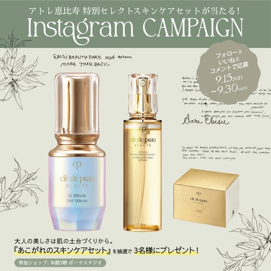 アトレ恵比寿が特別にセレクトした、憧れのスペシャルスキンケアセットが抽選で20名様に当たるInstagramキャンペーンを実施します。