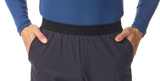 風を防ぎたいパンツの前腿部分には防水透湿性に優れた独自素材エバーブレスエアを配置しています。
