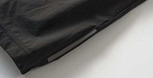 機能性とデザイン性を追求するために、縫製パターンをミリ単位で調整。また、裾にはばたつかないゴム絞りデザインを採用しています。細身でありながらも動きやすい、機能美あふれる一着です。