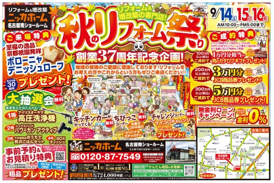 中部エリア23店舗合同で秋のリフォーム祭りを開催!9月14日(土)~ 16日(月祝)