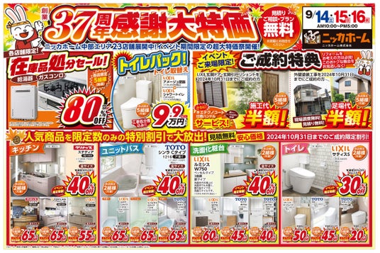 このたびニッカホーム創業36周年の感謝を込めて「創業36周年感謝祭」を中部エリア28店舗で開催いたします!