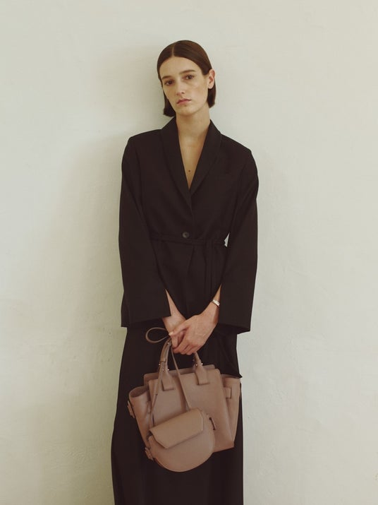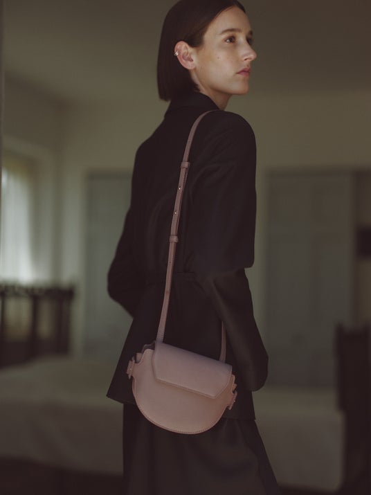 革らしさがありつつも上品なシボの表情が、シックな印象にまとめます。