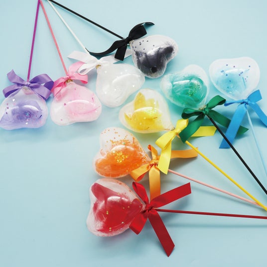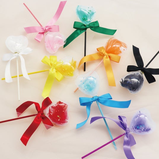 バルーンの形はラウンド・ハート・スターの3種、中に入れるコンフェッティは15種以上、スティックのカラーは10色以上からお選びいただけるので、柄意外の部分でも個性を出すことができます。