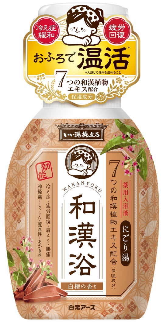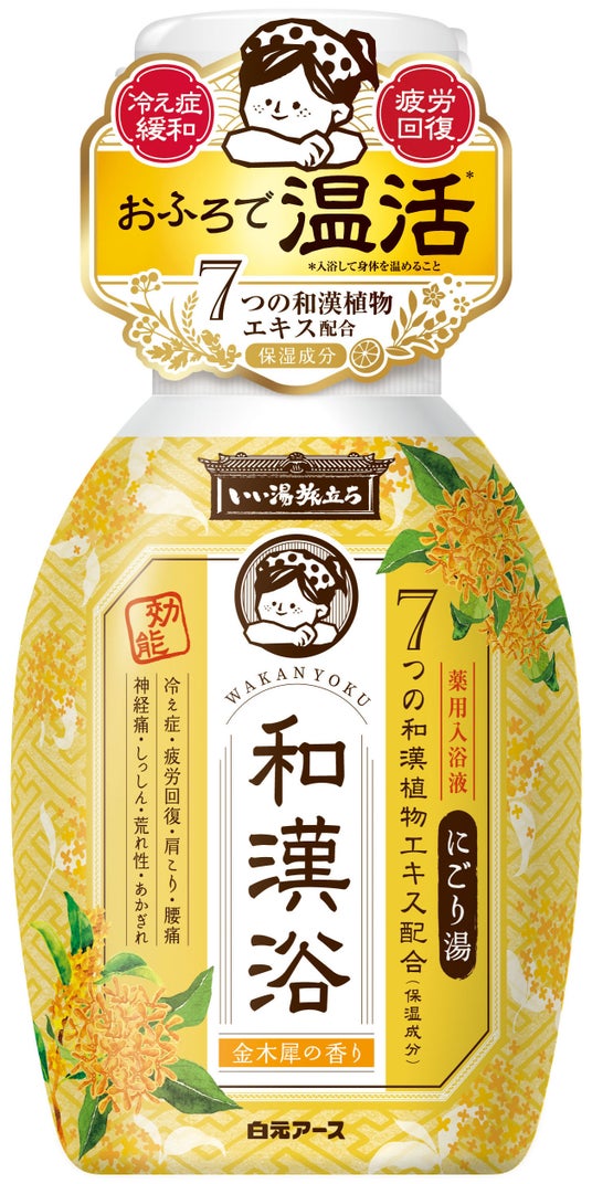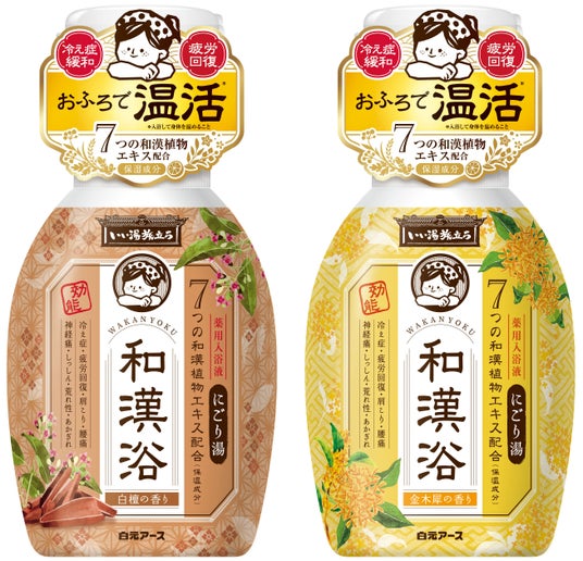 白元アース株式会社(本社:東京都足立区、社長:吉村一人)は、薬用入浴剤「いい湯旅立ち」シリーズに、7つの和漢植物エキス*1を配合した薬用入浴液『いい湯旅立ち 和漢浴 にごり入浴液 白檀の香り/金木犀の香り』を9月24日より新発売いたします。