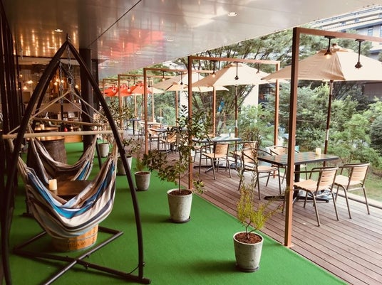 ドラマや映画などで多数しようされたテラス席