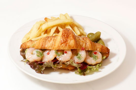 ハニーマスタードソースと、アボカドをたっぷり使ったワカモレフィリングでサンドしたクロワッサンサンドイッチです。