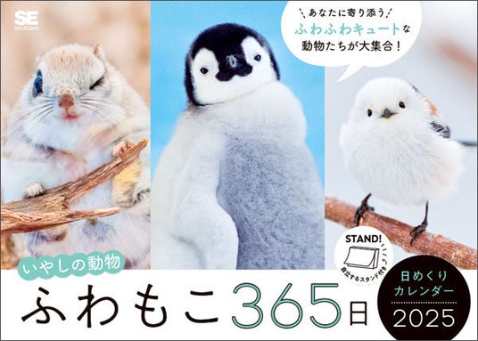 ふわもこ365日いやしの動物 日めくりカレンダー 2025ふわふわもこもこな野生動物たちが大集合した日めくりカレンダーです。大人気のシマエナガをはじめ、エゾクロテンやリス、野鳥にキツネ、モモンガ、秋田犬、ペンギンと、自然風景の中のふわふわキュートな動物写真を集めました。