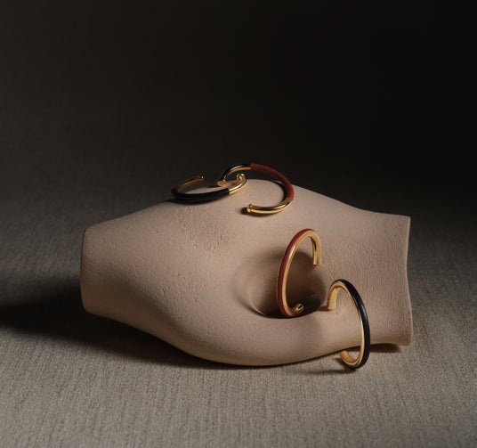 大胆なチェーンネックレス、イヤリング、ブレスレットのコレクション〈デュオ〉は、メタルとレザーの調和のとれた融合を卓越した職人技で表現しています。メタル、サテン、レザーの組み合わせは、柔らかさと強さが織りなす素晴らしい触感、比類のない体感をもたらします。コスチュームジュエリーは、タイムレスなデザインと独創性を兼ね備え、メゾンの洗練された伝統を新たな方法で表現しています。この独創的なジュエリーは、自由に組み合わせて個性的なルックを演出できるようにデザインされており、ブラック、シャンパン、そしてメゾンのシグネチャーカラーであるディープクンメルで彩られています。