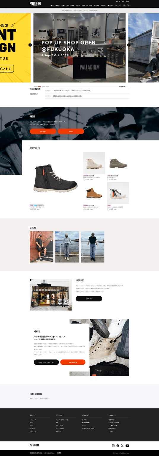 フランスのブーツスニーカーブランドPALLADIUM(パラディウム)が、9月11日、オフィシャルサイトをリニューアルし、初めてとなるブランドのECサイトもオープン。公式サイトとECサイトの一体型サイトで、フレンチミリタリーを起源とするパラディウムの情報発信を強化します。