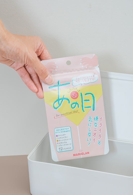 「MARIELAN(マリエラン)」が独自でブレンドした100%天然アロマが染み込んだパッチをサッと下着に貼るだけのフェムケアアイテム。
