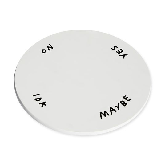 アーティストの Adam J.Kurtz(アダム・J・カーツ)が、従来の回転トレーにユーモラスな一言をのせました。悩んでいるときに、このバンブー素材のトレーを回せば、Kurtzの手書き文字のYes、No、IDK、Maybe(はい、いいえ、わからない、たぶん)の言葉が答えを出してくれます。トレーを回転させる台座の裏には、Kurtzによる格言がプリントされています。※トレーには食品を直接のせないでください。