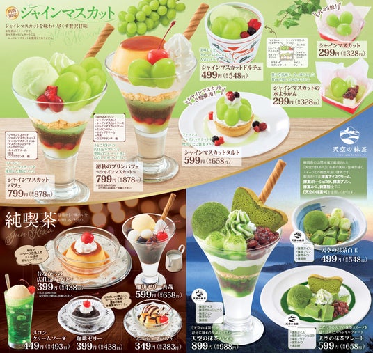 ■左)シャインマスカットパフェ 799円(税込878円)
