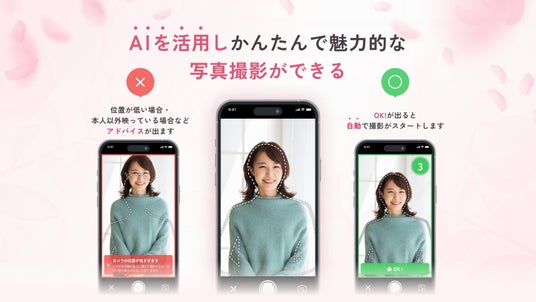 また、AIを活用した「魅力的な写真が撮影できる機能」も実装。はじめての方も気負わずアプリを利用開始することができます。